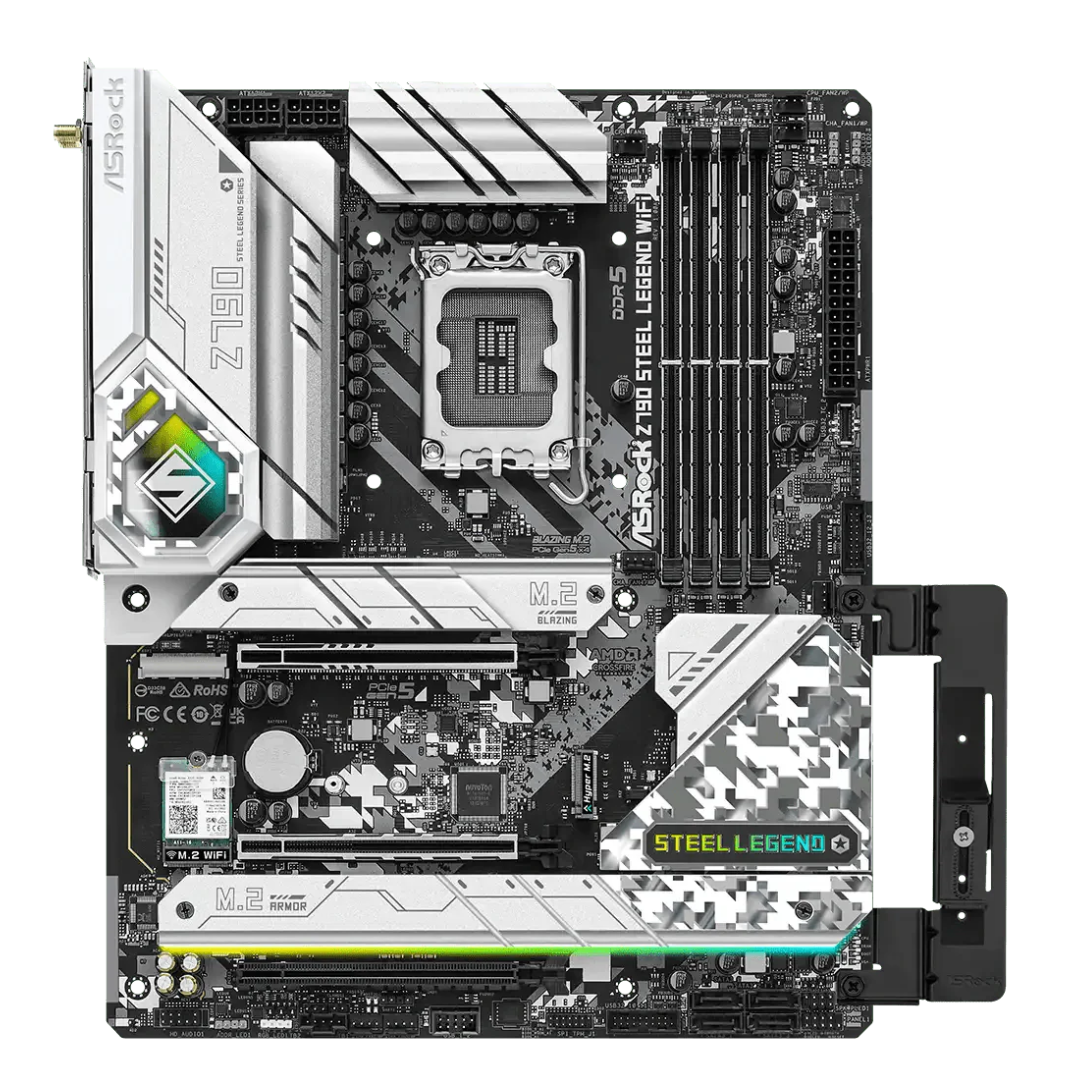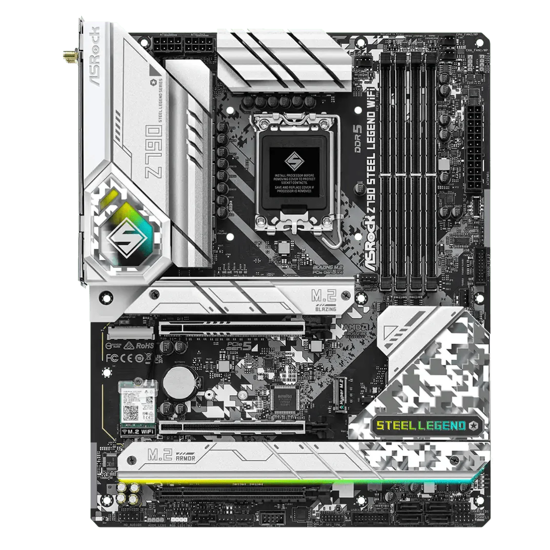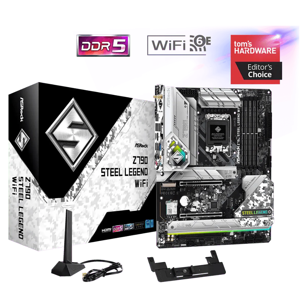 ASRock Z790 Steel Legend WiFi motherboard is engineered for performance-driven enthusiasts and gamers, offering robust support for 14th, 13th, and 12th Gen Intel® Core™ processors via its LGA1700 socket and Intel Z790 chipset. This motherboard blends durability and high-performance features, making it a standout choice for users looking to build a reliable and efficient gaming or productivity rig.