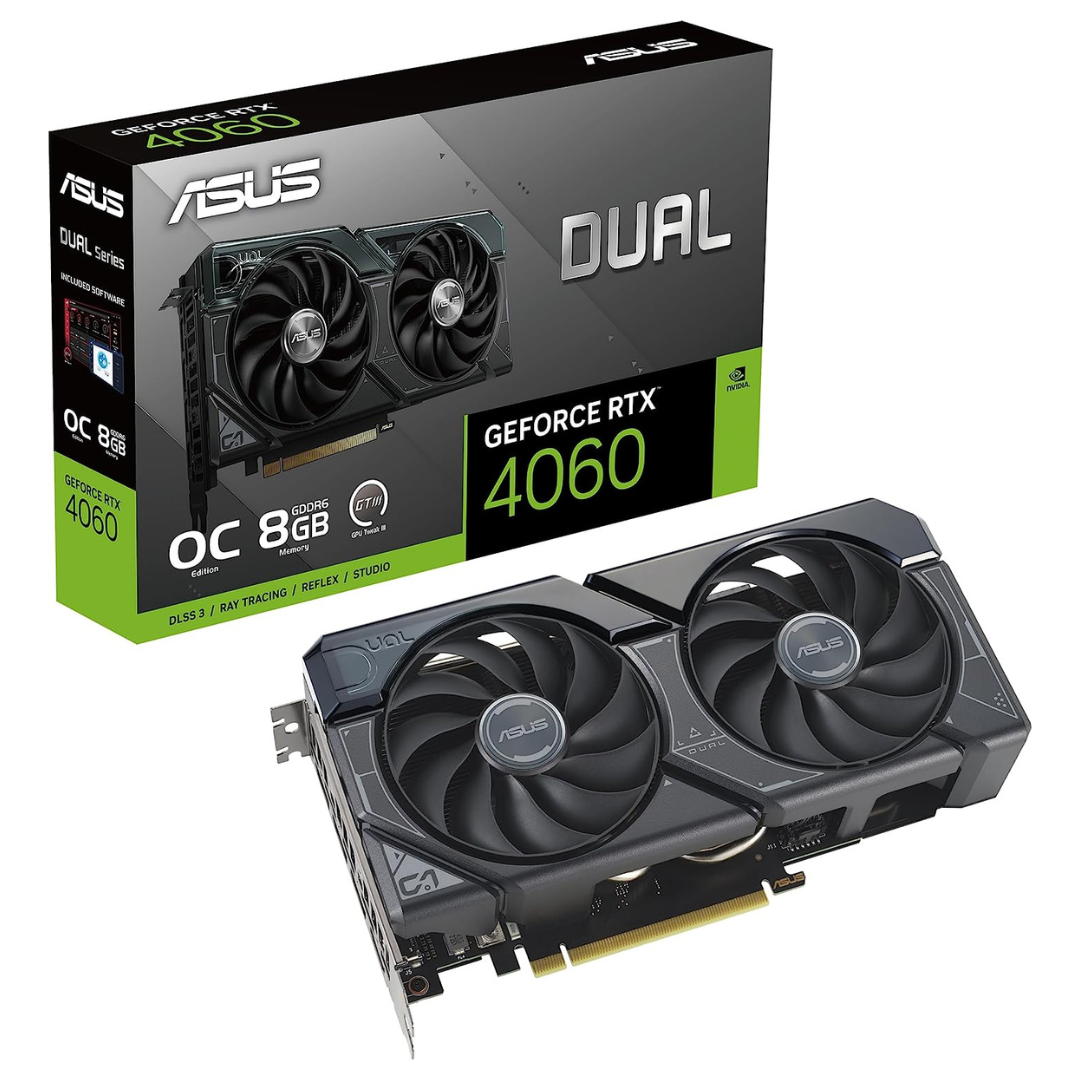 ASUS Dual GeForce RTX™ 4060 OC Edition – 8GB GDDR6, PCIe 4.0, DLSS 3, HDMI 2.1a, DisplayPort 1.4a