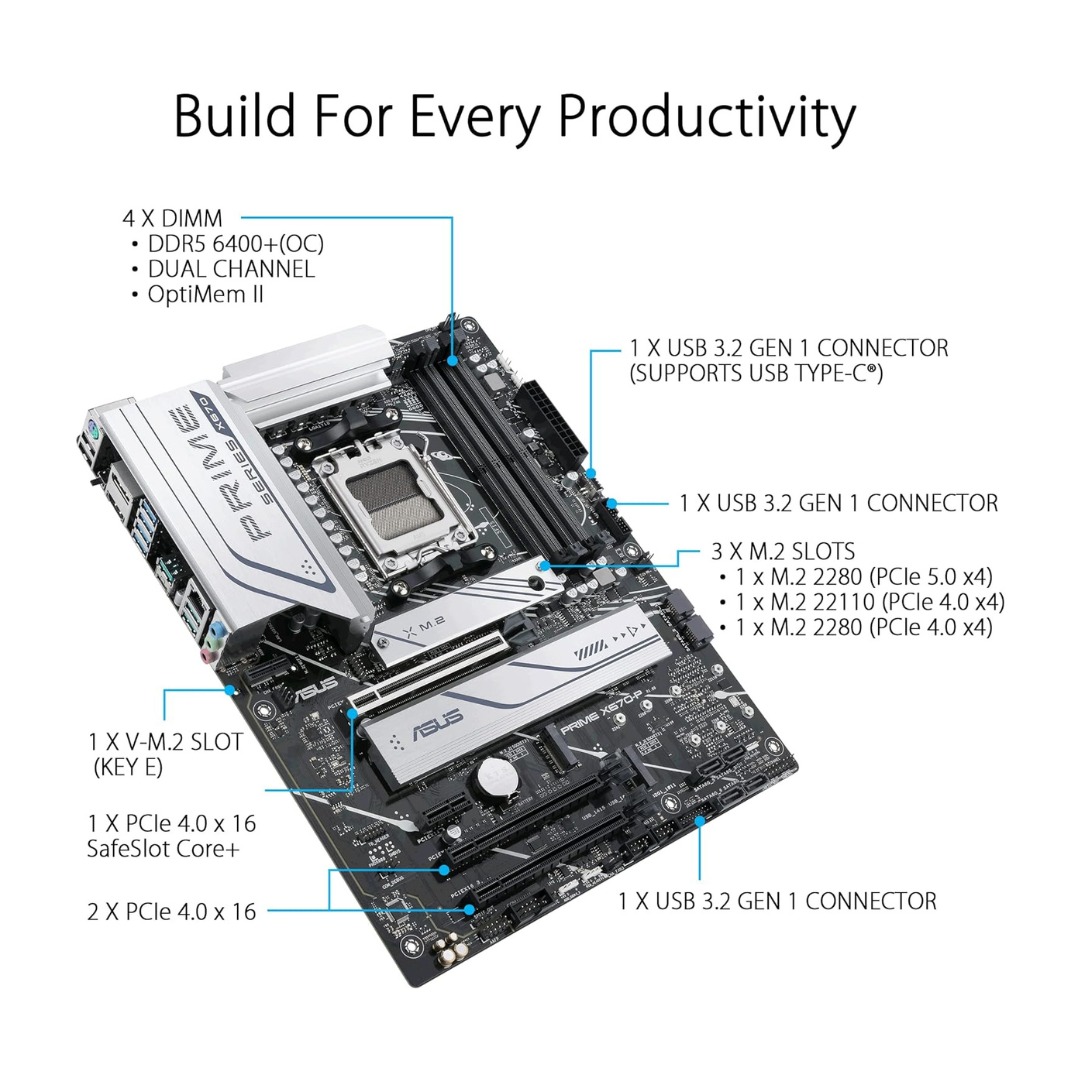 ASUS Prime X670-P Socket AM5 ATX Motherboard – DDR5, 3xM.2 Slots, USB 3.2 Gen 2×2 Type-C – 90MB1BU0-M0EAY0