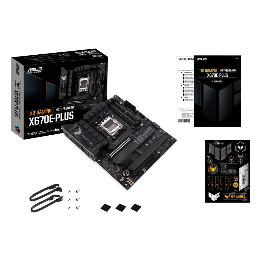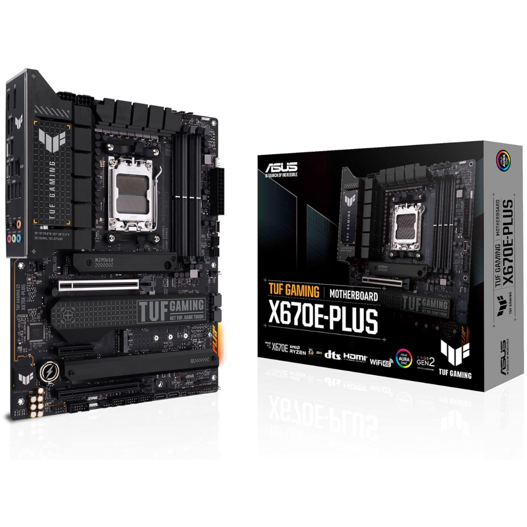 ASUS TUF Gaming X670E-PLUS motherboard, engineered to elevate your gaming experience to new heights. Designed to support AMD Ryzen 7000 Series desktop processors with the AM5 socket, this ATX motherboard is packed with features to optimize performance and connectivity.