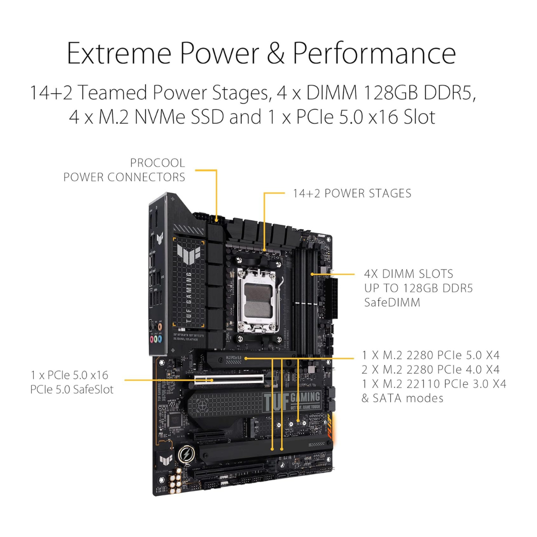 ASUS TUF Gaming X670E-PLUS ATX Motherboard – 16 Power Stages, PCIe 5.0, DDR5 Memory