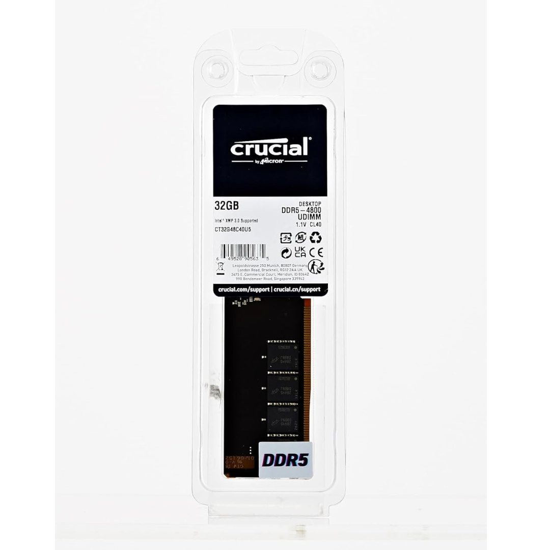Crucial RAM 32GB DDR5 4800MHz CL40 Desktop Memory – Black (CT32G48C40U5)