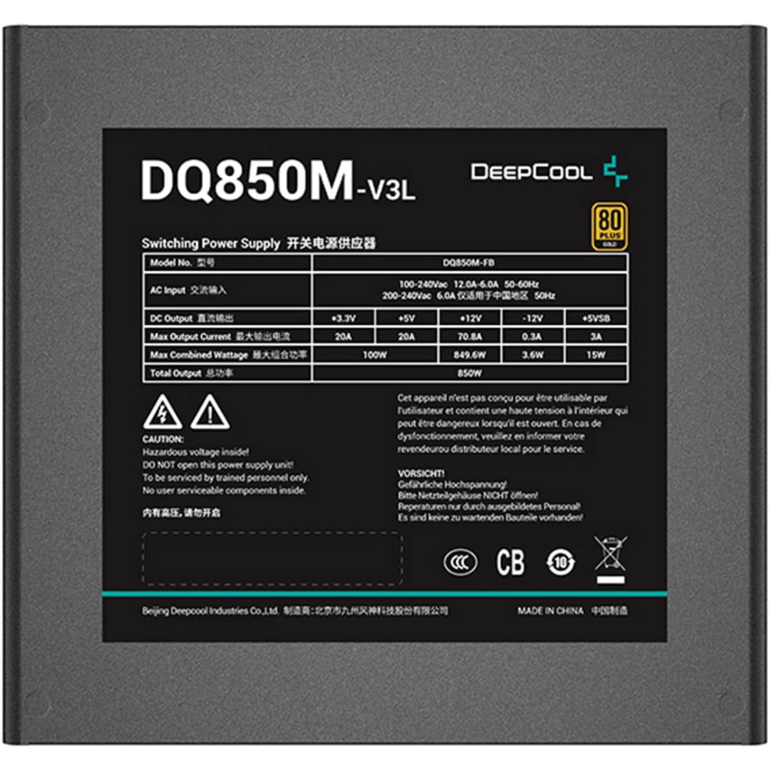 Deepcool DQ850M-V3L is an 80 Plus Gold Fully Modular Power Supply with a 100,000-hour MTBF. It supports ATX12V V2.4 standards and features: