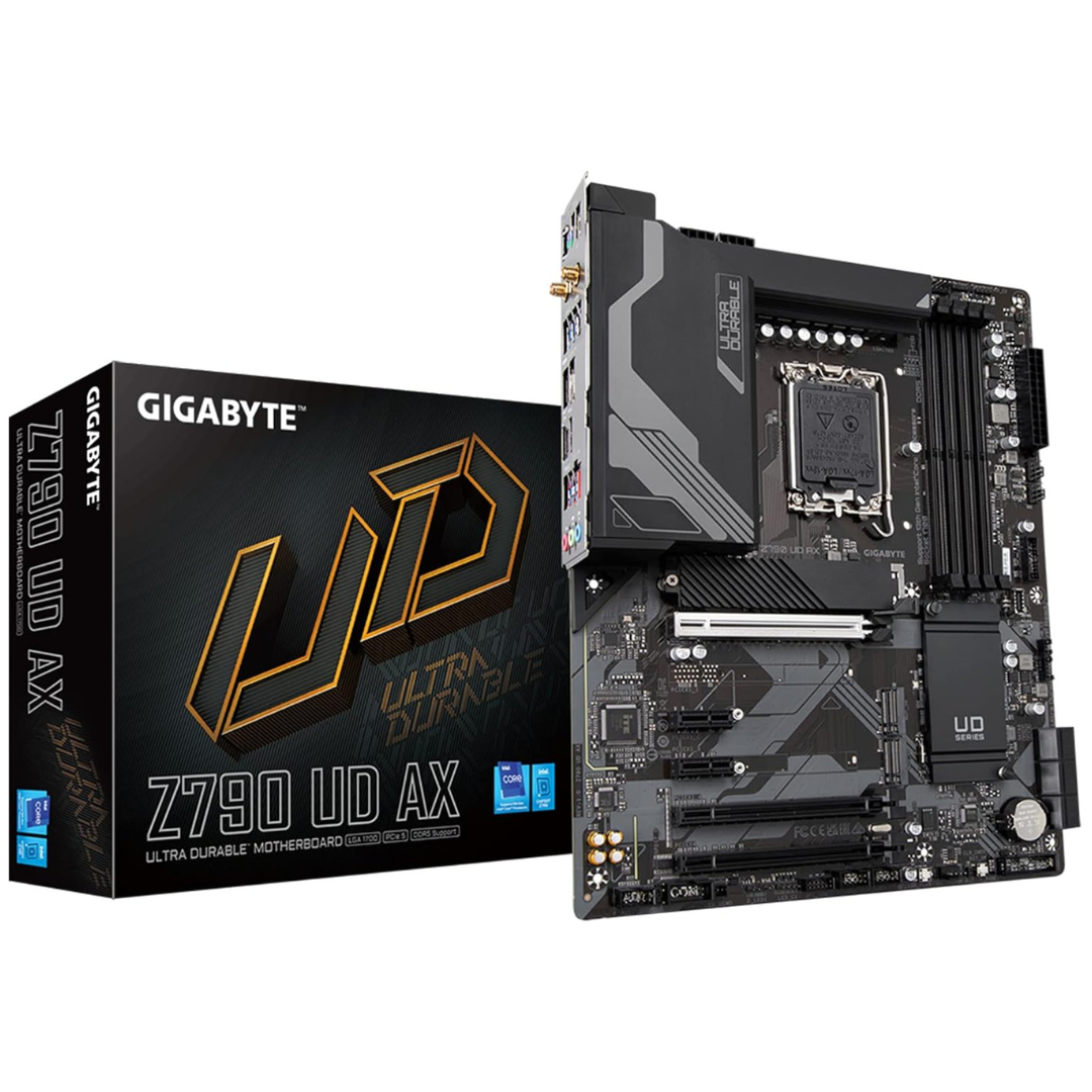 GIGABYTE Z790 UD AX motherboard is designed for Intel® 13th and 12th Gen Core processors, featuring DDR5 compatibility, triple M.2 slots, PCIe 5.0 support, and advanced connectivity options.