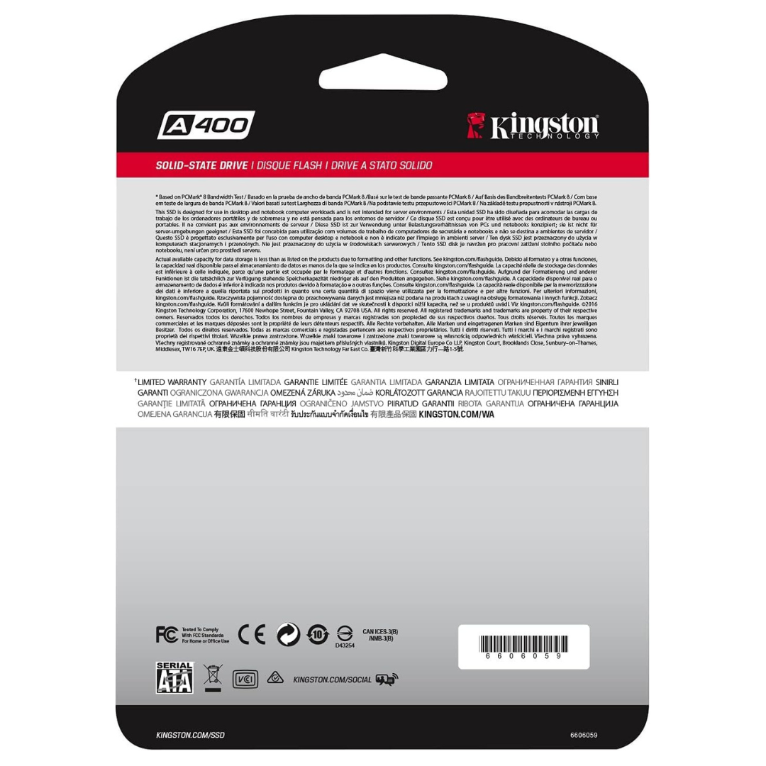 Multiple Capacities: Whether you’re looking to boost the performance of your desktop PC or replace your laptop’s existing hard drive, the A400 SSD comes in various capacities to suit your storage needs, providing ample space for your operating system, applications, games, and multimedia files.