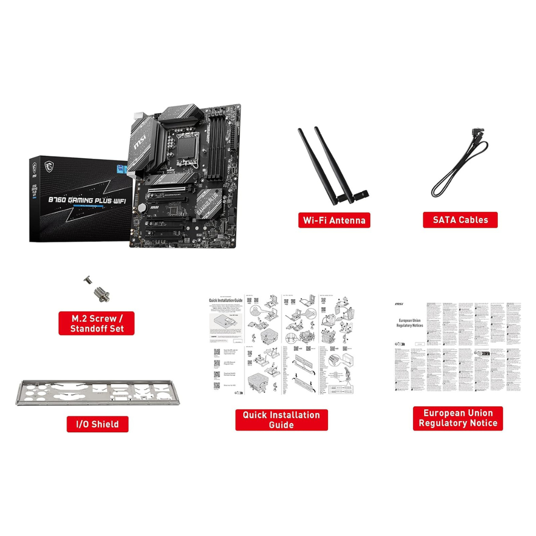 MSI B760 Gaming Plus WIFI ATX Gaming Motherboard – Supports 12th/13th Gen Intel Processors, LGA 1700, DDR5, PCIe 4.0, M.2, 2.5Gbps LAN, USB 3.2 Gen2, Wi-Fi 6E