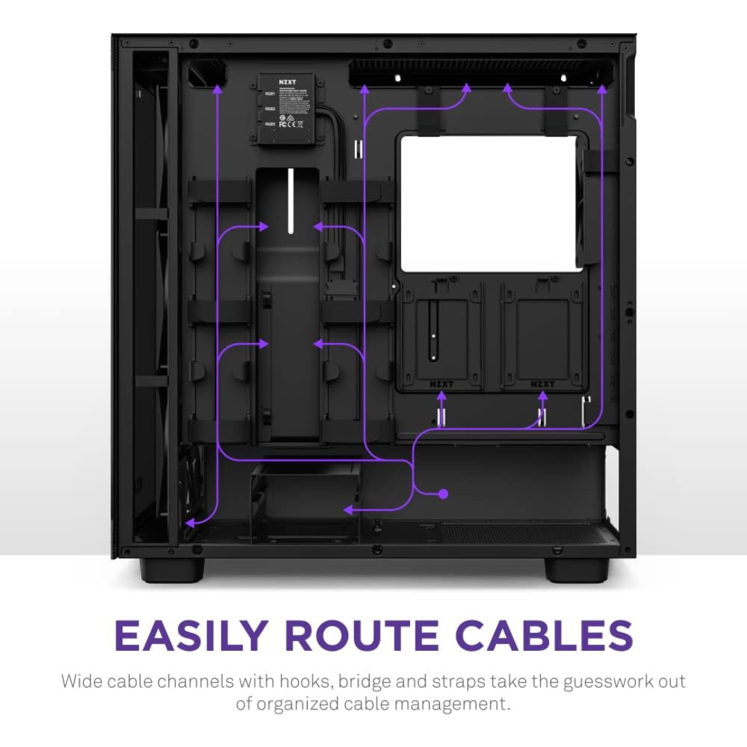 Easy Cable Management: Simplify cable management with wide cable channels, hooks, bridges, and straps that eliminate guesswork and ensure organized cable routing. Keep your build clean and clutter-free for optimal airflow and aesthetics.