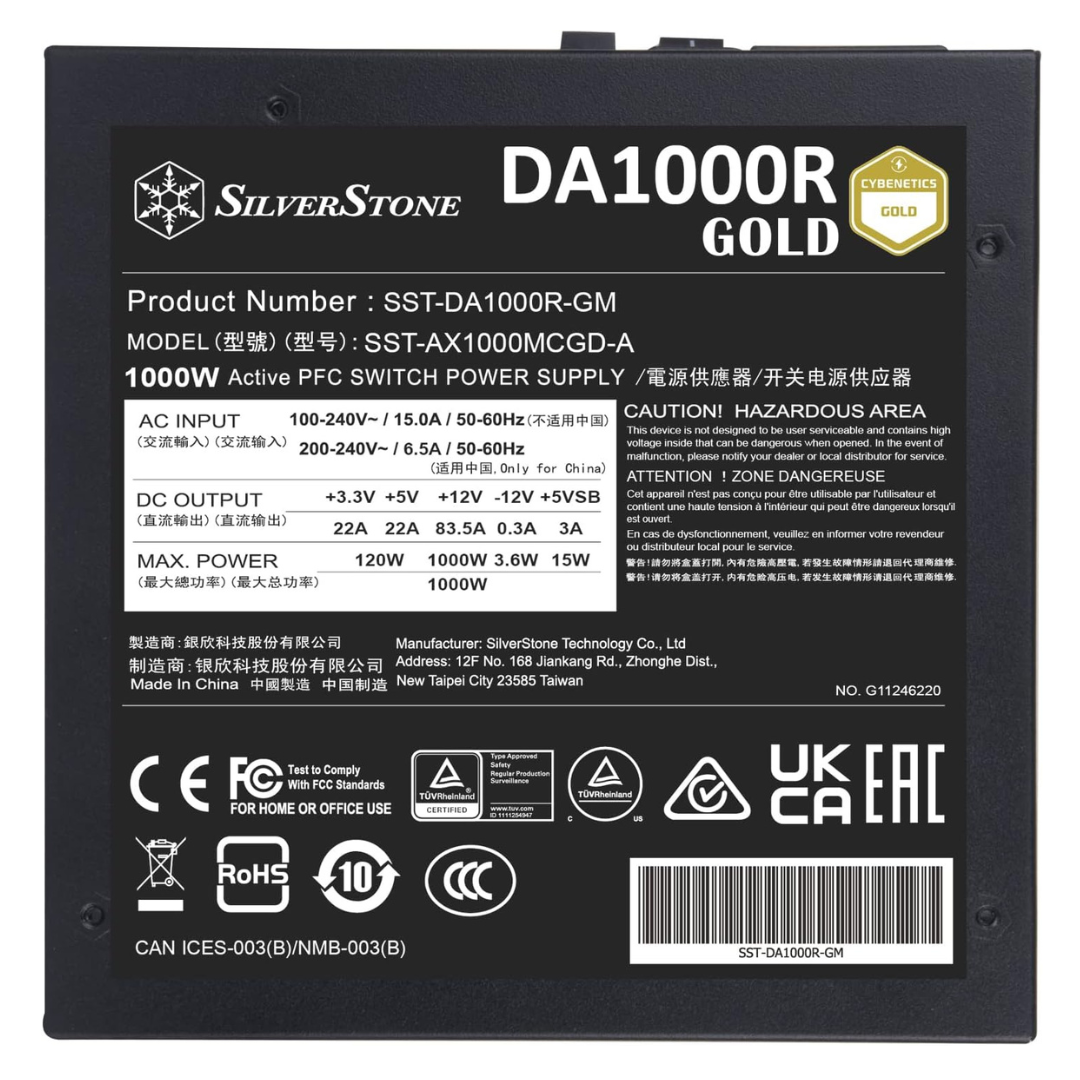 SilverStone Technology Decathlon DA1000R Gold Cybenetics Gold 1000W Fully Modular Power Supply – PCIe 5.0, ATX 3.0 Compatible – SST-DA1000R-GM