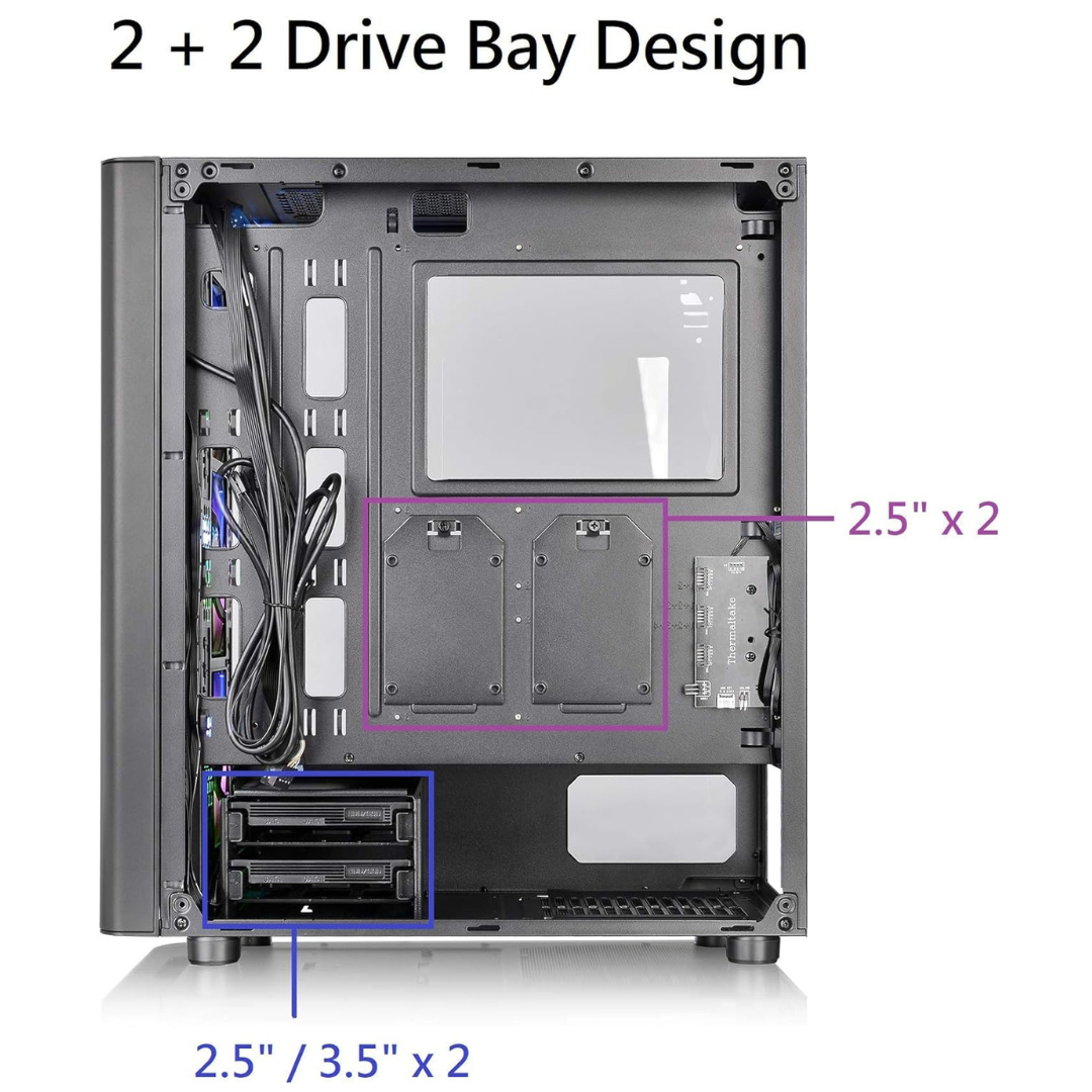 Drive Bays: Versatile storage options with 3 x 2.5″ and 2 x 2.5″/3.5″ drive bays, offering ample space for SSDs and HDDs to accommodate your storage needs.