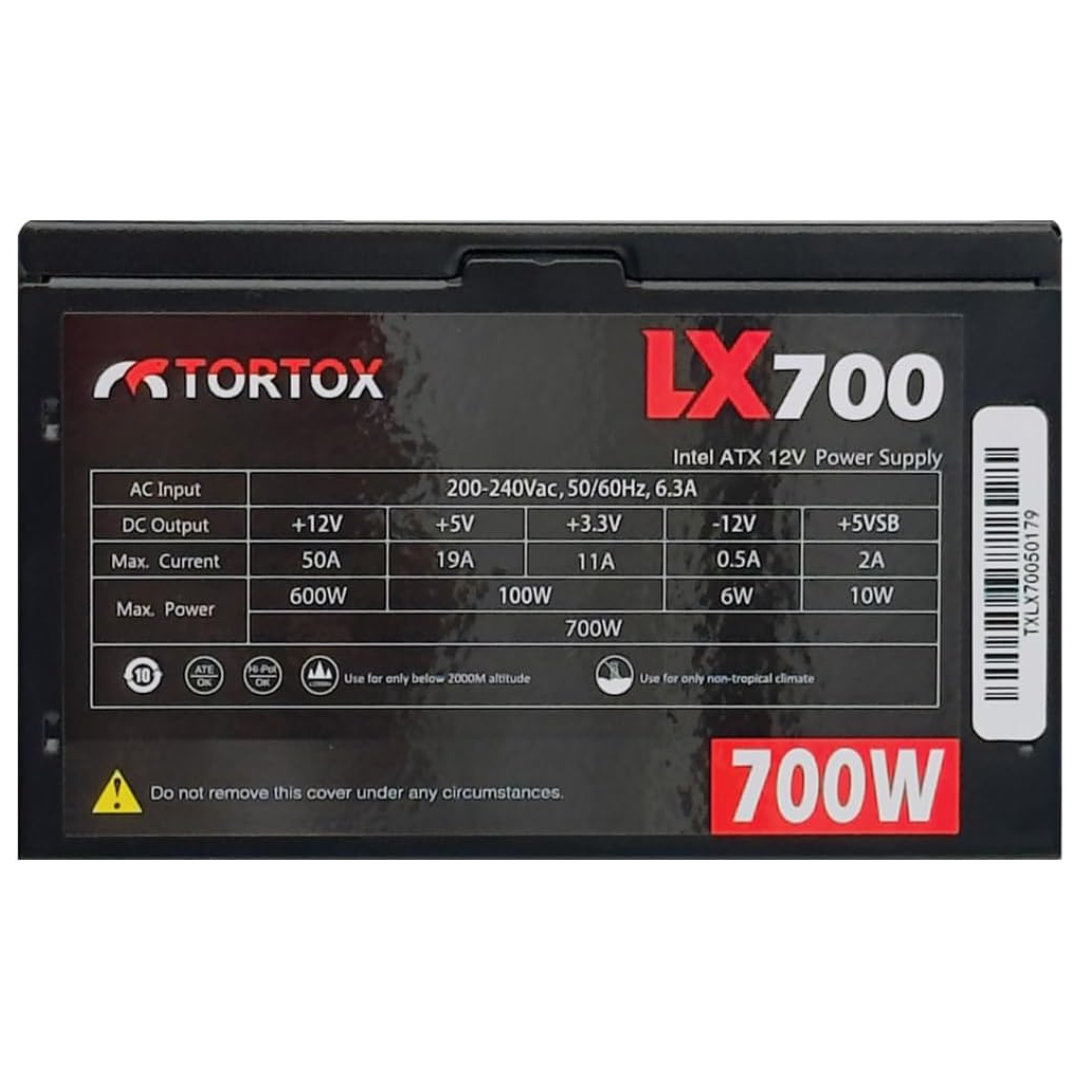 Tortox LX700 Low Noise ATX Power Supply – 700W, Compatible with Latest Intel and AMD CPUs, 12CM Cooling Fan, 6+2 Pin VGA Interface, Wide Input Voltage Range, Ideal for Gaming PC Cases