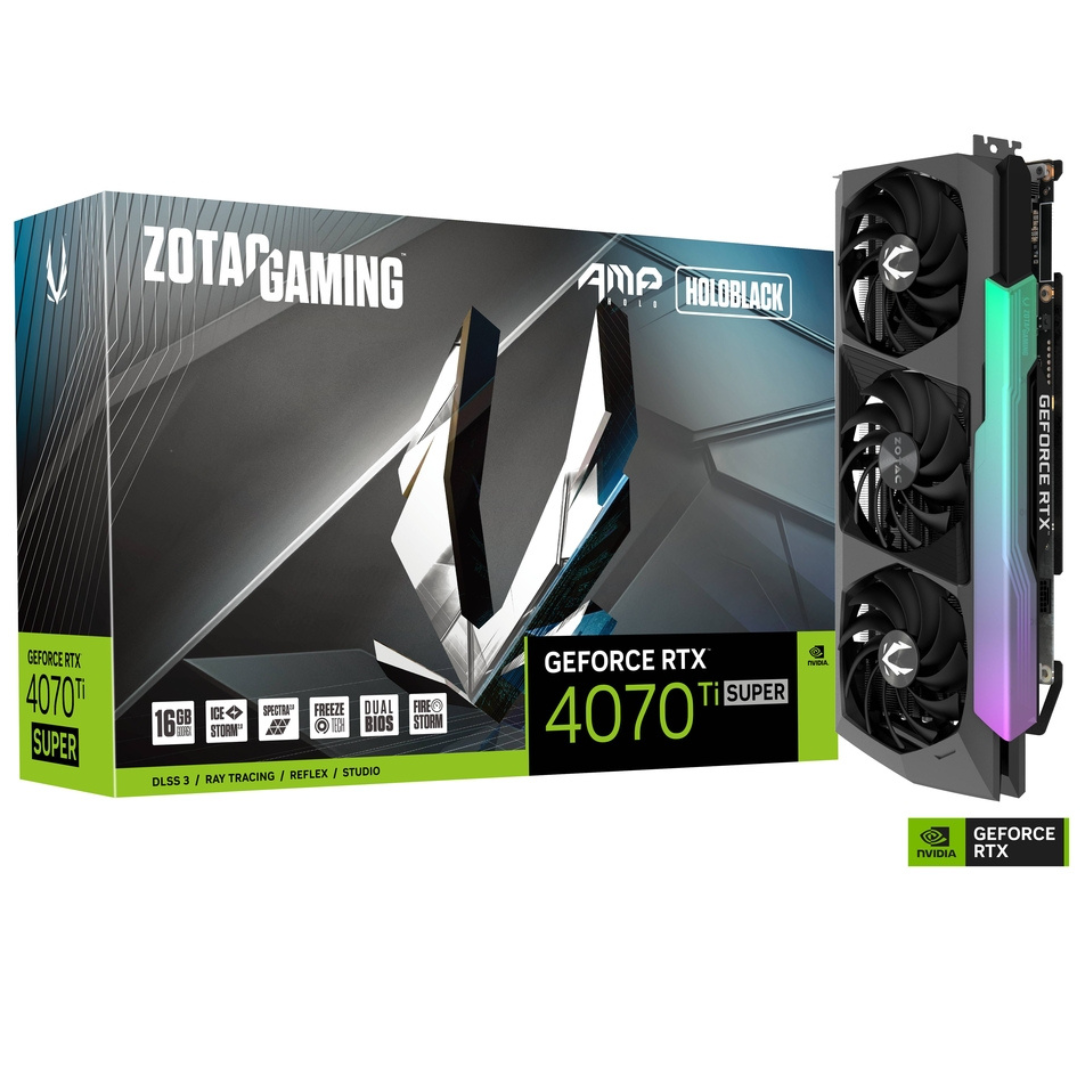 Elevate your gaming rig with the ZOTAC GAMING GeForce RTX 4070 Ti SUPER AMP HOLO 16GB GDDR6X, where design meets performance, and every frame is rendered with precision and speed.